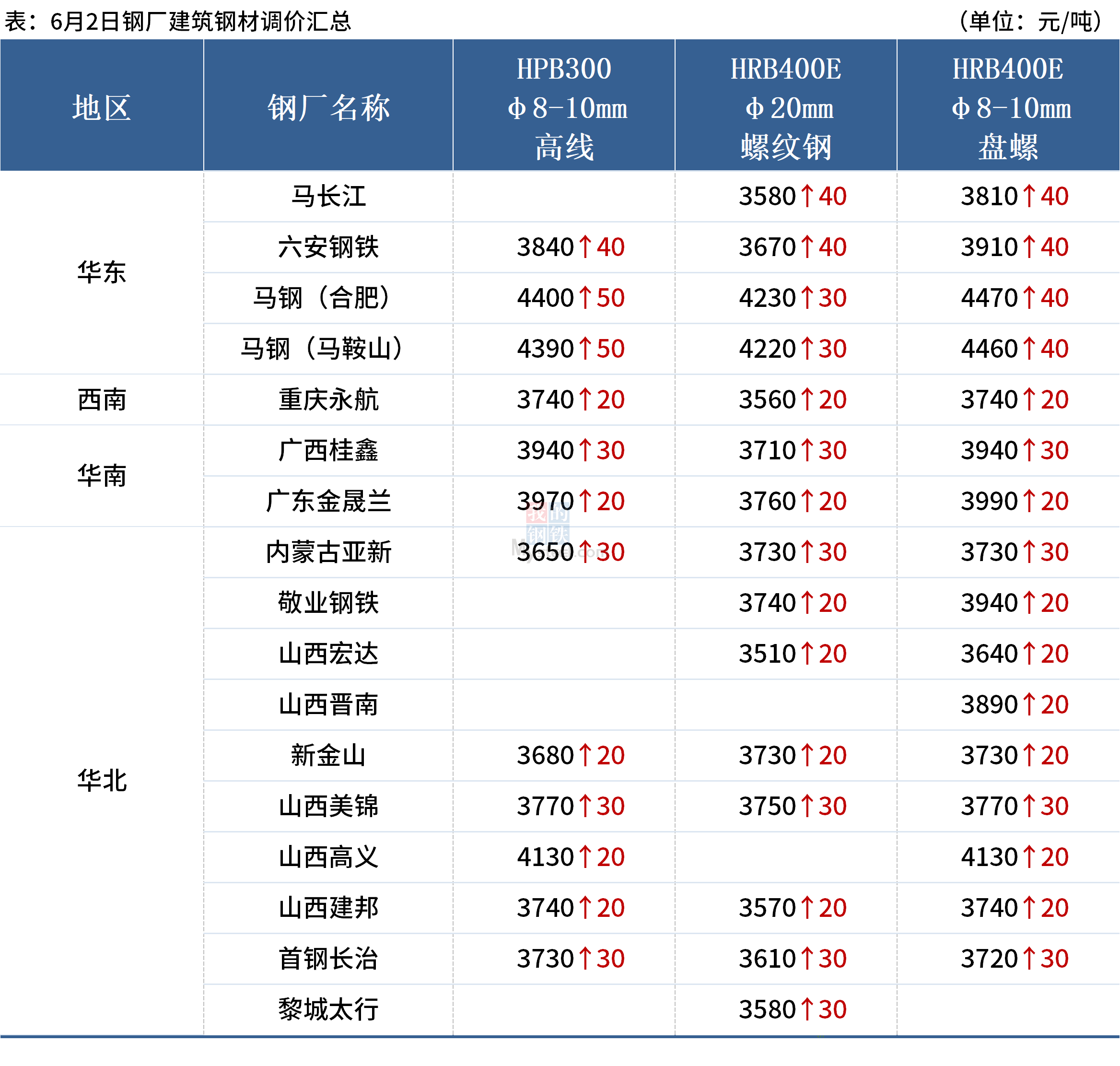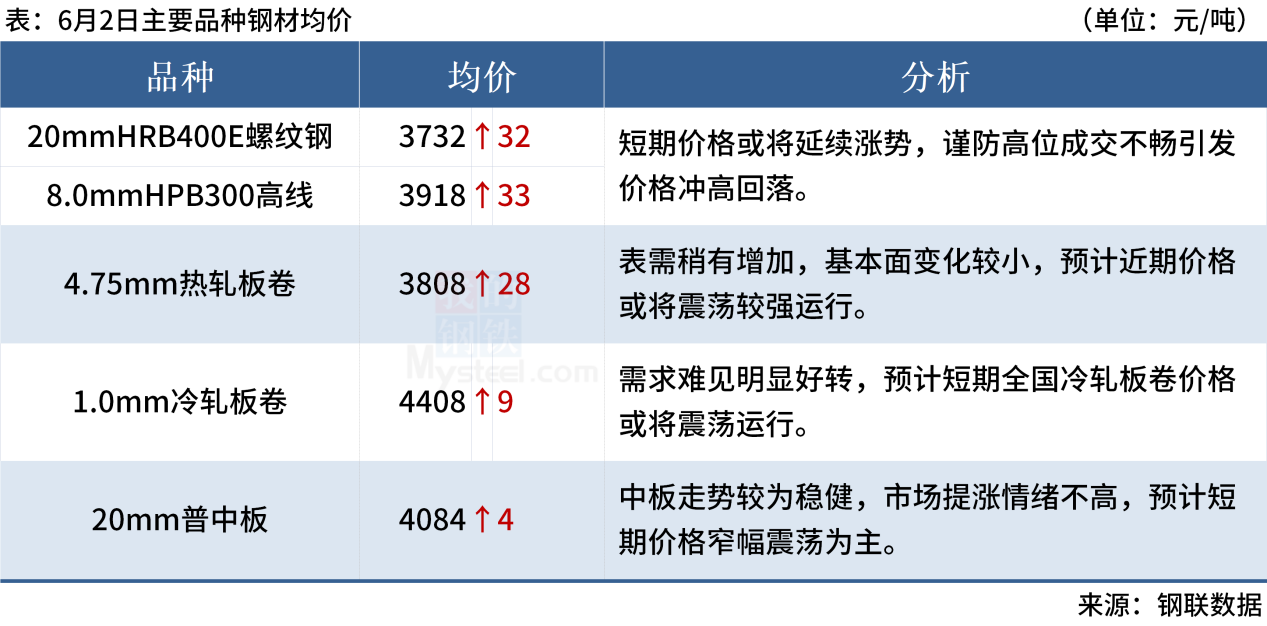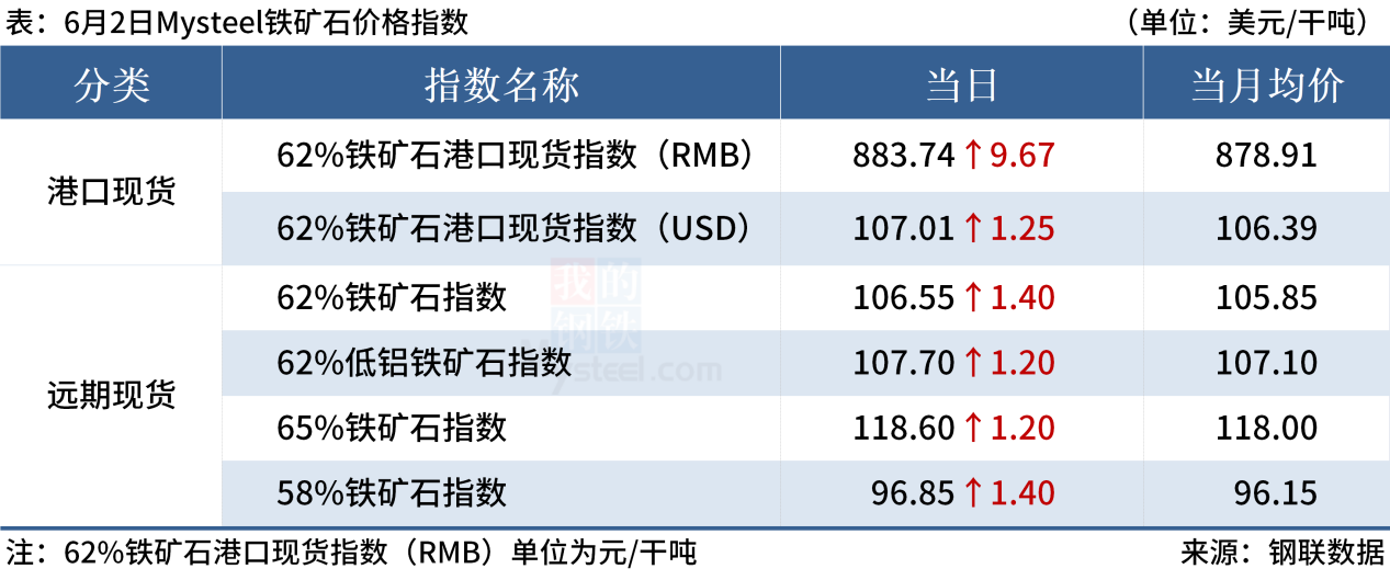 ◎ 6月2日,全国主港铁矿石成交89.15万吨,环比减7.9%;237家主流贸易商建材成交18.90万吨,环比增5%。