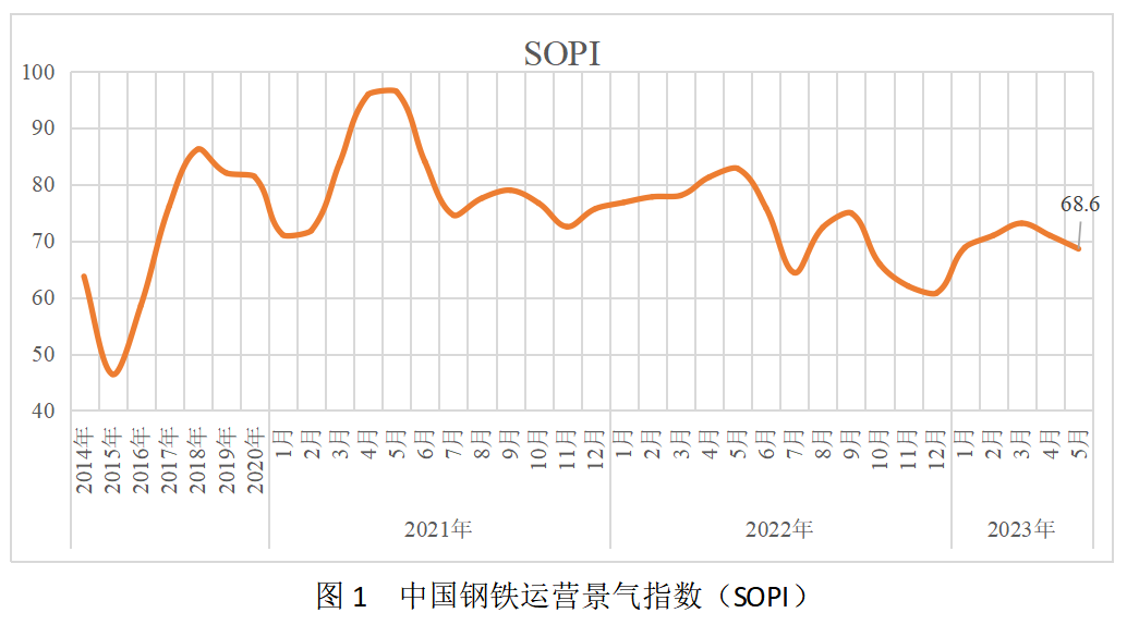2023年5月份中国钢铁运营景气指数(SOPI)下降至68.6