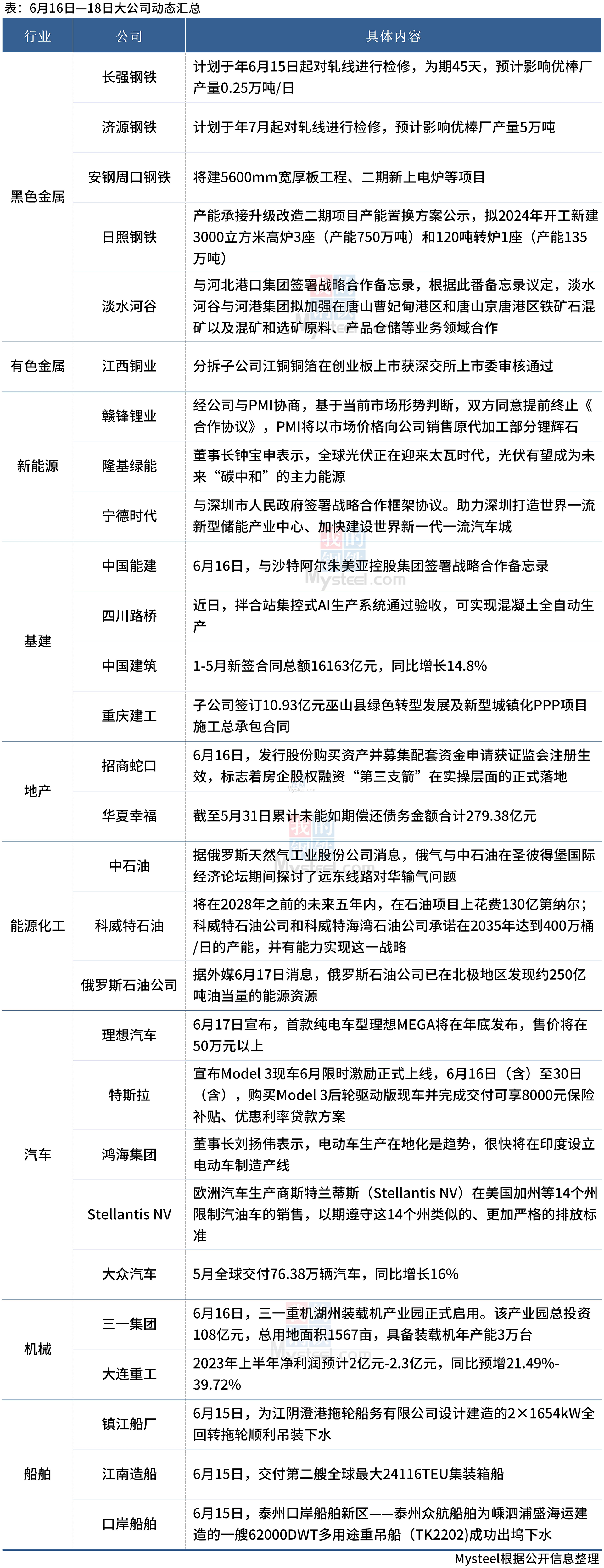 6月19日,Mysteel汇总部分大宗商品相关企业动态。