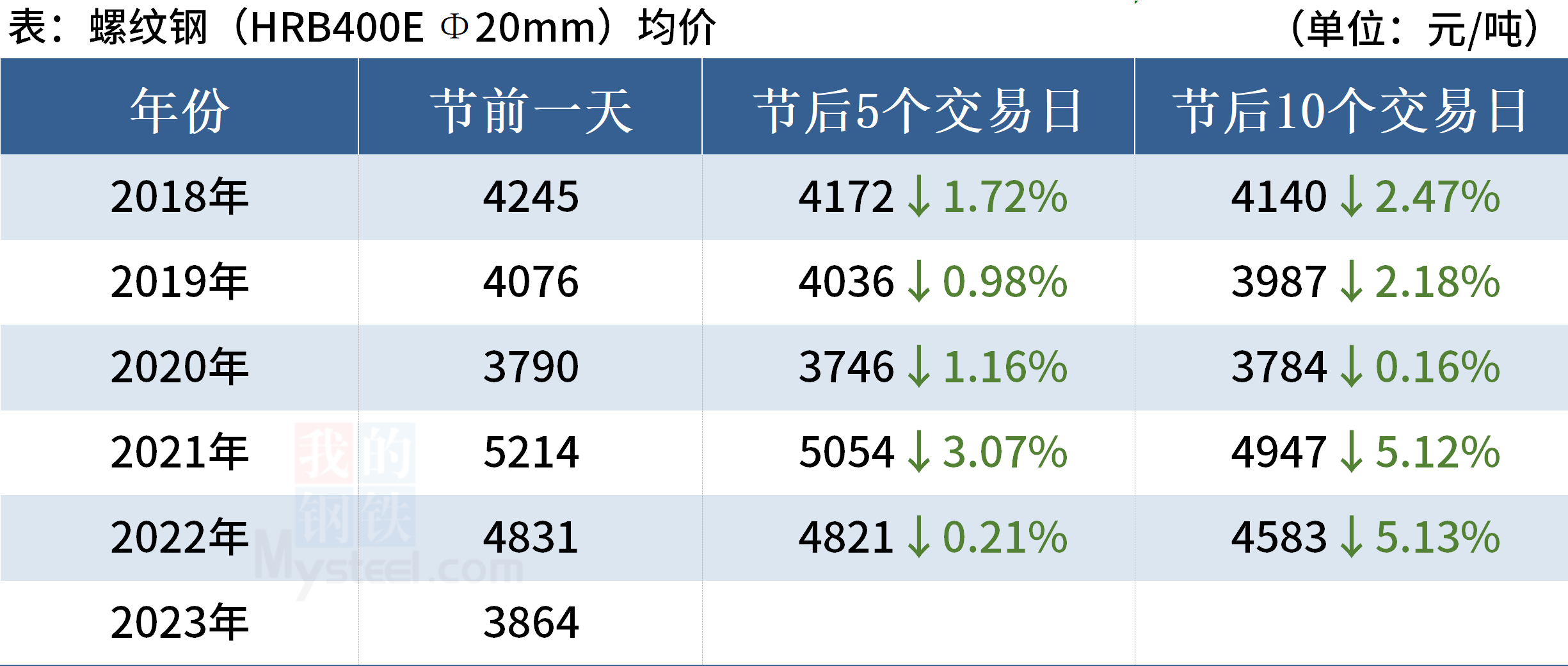 ◎ Mysteel汇总近5年端午节后10个交易日全国主要城市13大品种钢材均价走势。详情>>